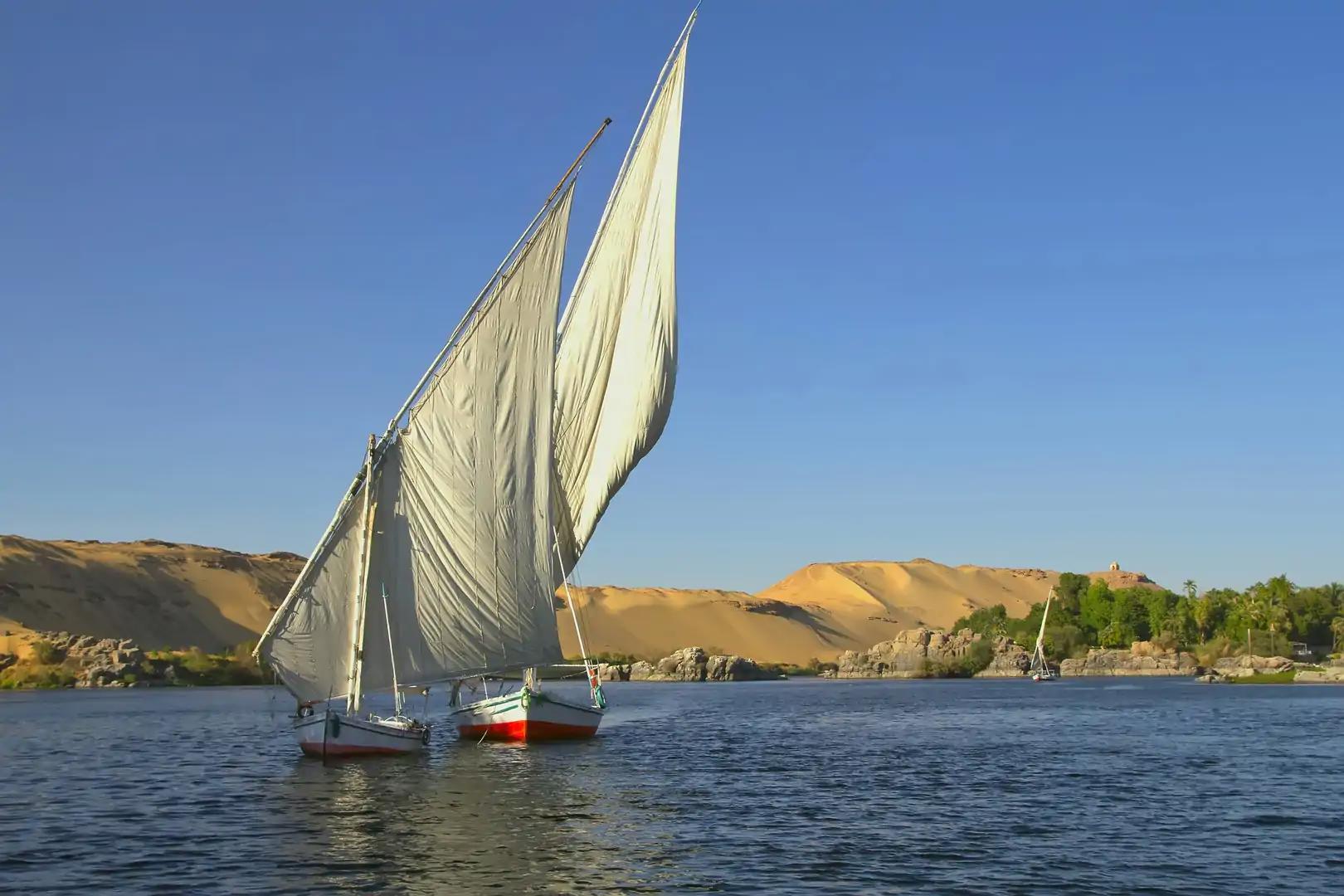 Etterpå kan dere lene dere tilbake i en tradisjonell felucca-seilbåt og oppleve Nilen på den mest autentiske måten. Alt skjer i rolig tempo – dere kan bare nyte.