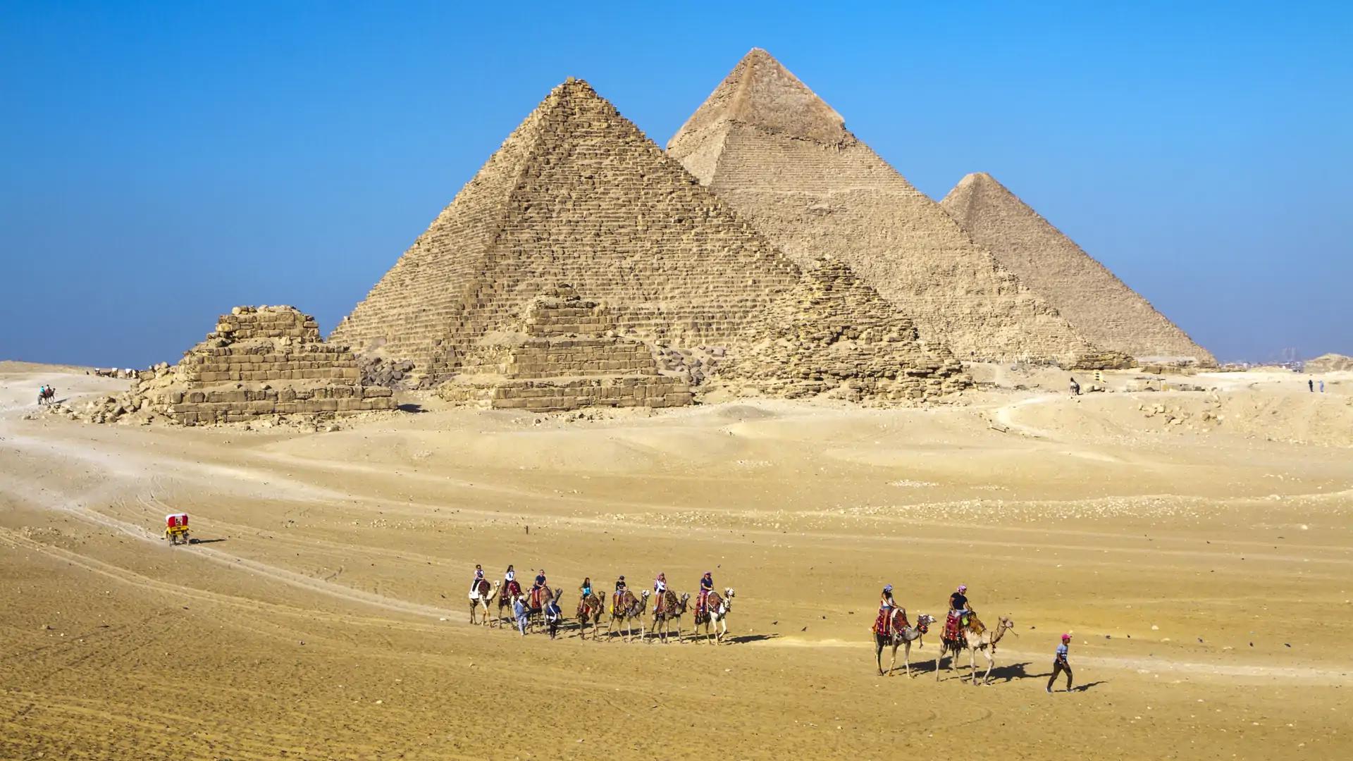 Etter utsjekk flyr vi til Kairo, hvor pyramidene og Sfinksen venter. Vår lokale ekspertguide tar dere tett på verdens mest ikoniske byggverk. Etter lunsj opplever dere Egyptian National Museum og får se skattene fra Tutankhamons grav. Dagen rundes av i Khan El Khalili-bazaren, hvor gamle historier møter orientalsk stemning. Senere fly tilbake til Sharm el Sheikh.