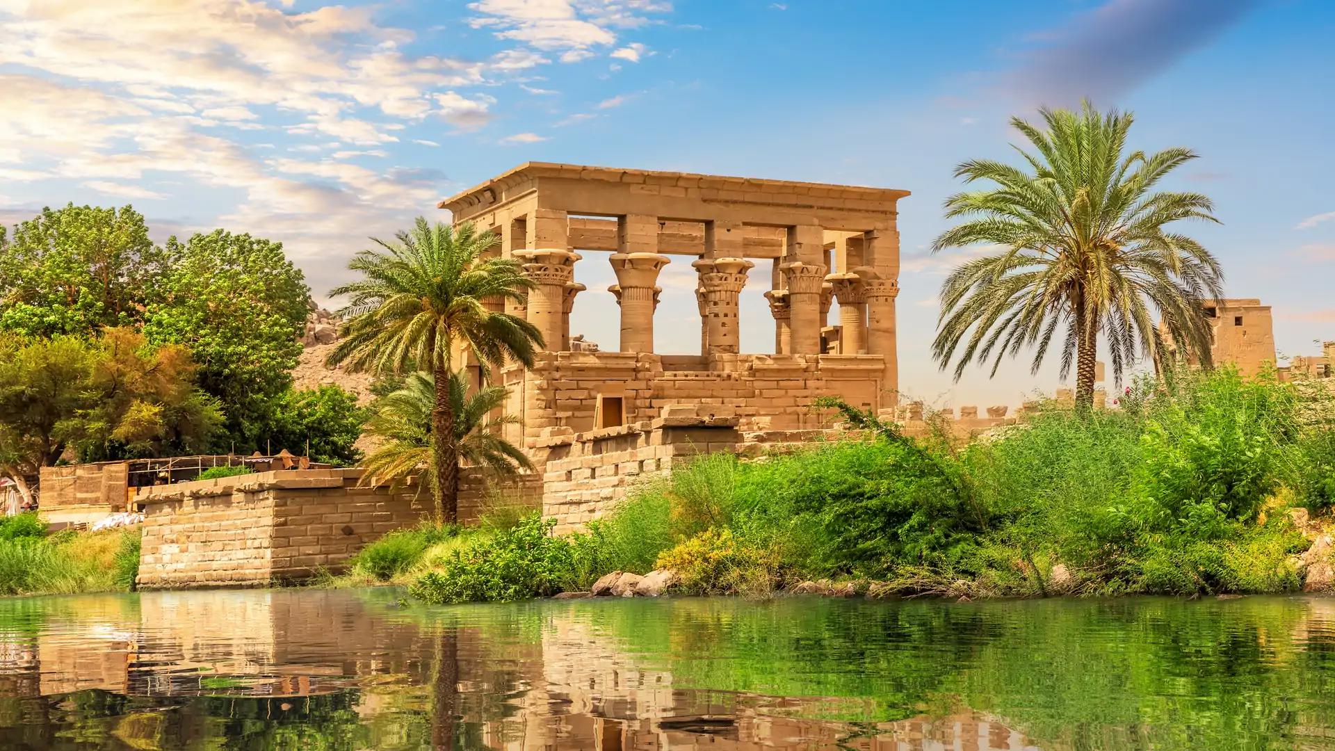 Frokost om bord før vi utforsker Aswan en by kjent for sin vakre beliggenhet ved Nilen og sin viktige rolle i moderne egyptisk historie. Først besøker man Aswan demning, et imponerende ingeniørverk som har stor betydning for vannregulering og elektrisitetsproduksjon i Egypt. Her får man innsikt i hvordan denne massive strukturen har påvirket landet både økonomisk og miljømessig. Deretter går turen til Philae-tempelet, som ligger på en liten øy midt i Nilen. Tempelet er dedikert til gudinnen Isis og er kjent for sin vakre arkitektur og godt bevarte relieffer. Philae-tempelet ble flyttet til øya Agilkia for å redde det fra oversvømmelse da Aswan demning ble bygget, noe som gjør besøket ekstra spesielt.