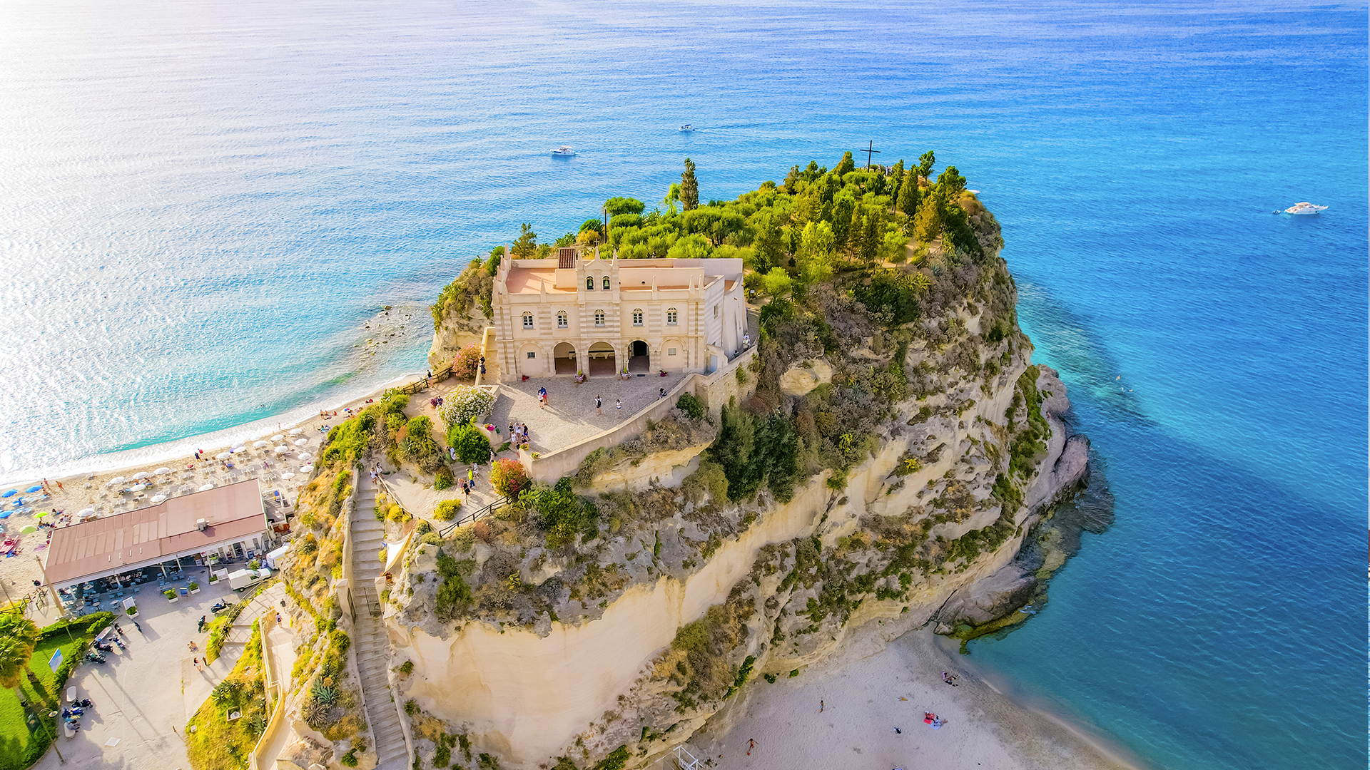 Tropea, ofte kalt «Calabrias juvel», er en by som oser av sjarm og historie. Byen er bygget på en klippe med fantastisk panoramautsikt over Det tyrrenske hav, der du på klare dager kan se De eoliske øyer. Tropeas gamleby er en labyrint av trange brosteinsbelagte gater der du kan oppdage små butikker, lokale spesialiteter og historiske bygninger, som klosteret Santa Maria dell'Isola, som ruver majestetisk over kysten. Byens strender er berømte for sin myke, hvite sand og sitt krystallklare vann, noe som gjør den til et perfekt sted for en avslappende ferie. Tropea har en rik historie, et fantastisk landskap og autentisk italiensk kultur, og er et sted du vil ønske å komme tilbake til om og om igjen.