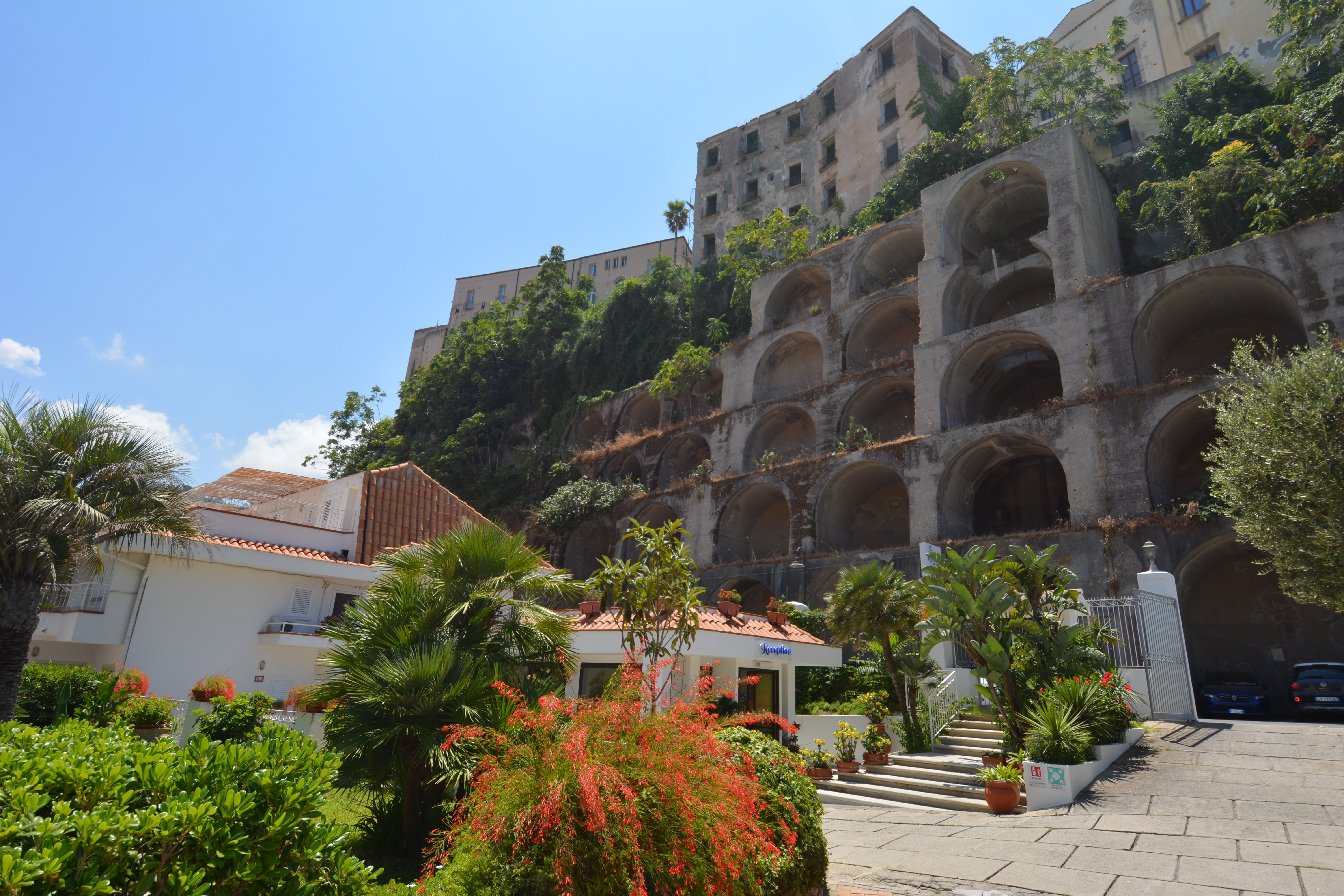 Hotellet har en ideell beliggenhet kun 100 meter fra det historiske sentrum av Tropea, og inviterer gjester til en avslappende ferie i grønne omgivelser, kun et steinkast fra havet, midt mellom Tropea-klippen og San Leonardo-klippen. Et enkelt og lite hotell for en god og sentral base i Calabria. Le Roccette Mare har et privat strandområde på Spiaggia della Rotonda, rett ved hotellet. Nyt soltimer under parasollen, eller svøm i det krystallklare havet. Stranden er utstyrt med solsenger, solstoler og parasoller for hotellets gjester. I perioden fra 26. juni til 22. august er ikke strandservice inkludert i oppholdet. Det er også mulig å besøke Grotta di San Leonardo, som er lett tilgjengelig via en smal passasje i klippen som omgir stranden. Oppholdet er med halvpensjon som inkluderer smakfulle retter til frokost og middag i hotellets restaurant. Lunsj og drikkevarer er ikke inkludert i reisens pris. Le Roccette Mare er et lite og enkelt, men sjarmerende hotell som gir deg en god og sentral base på feiren i Calabria. Her bor du med kort vei til kjente severdigheter og det beste av Tropea. Avstander Strand/basseng Restauranter/Barer Internett Annet Utsjekk for hjemreise innen kl. 10:00. Standardrom for 2 personer Komfortrom for 2 personer Standard ettromsleilighet for 3-4 personer (maks 4 voksne og 1 barn under 11 år) Fasiliteter (alle rom) Oppholdet på Le Roccette Mare er med halvpensjon, som inkluderer frokost og middag i hotellets restaurant. Tider for måltider oppgis ved innsjekk på hotellet. Drikkevarer, lunsj og snacks er mot betaling. Ikke inkludert Turistskatt Legehjelp Fasiliteter for personer med nedsatt bevegelighet